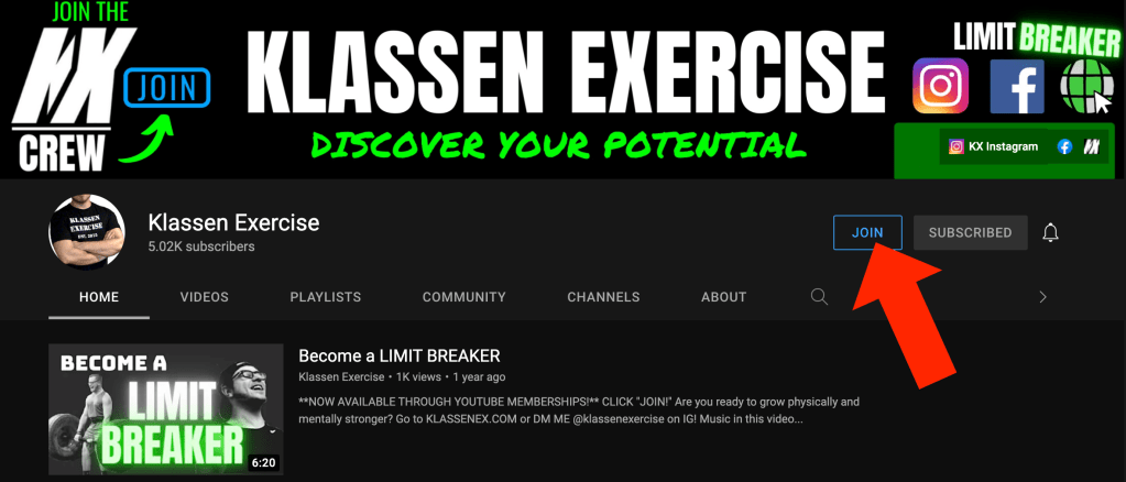 The LIMIT BREAKER online coaching course is now available on YouTube through a YouTube membership at an exclusive discount! Watch this video below for more information or click this link to go to the YouTube channel: https://www.youtube.com/c/KlassenExercise